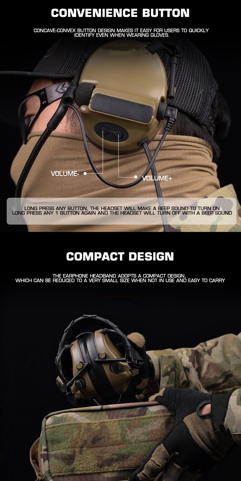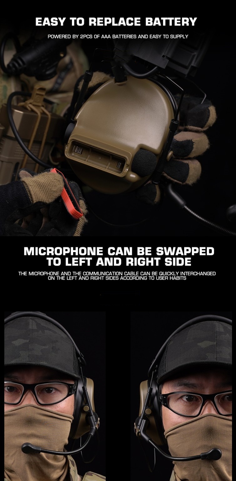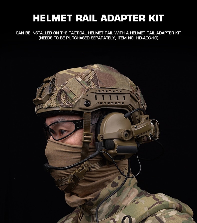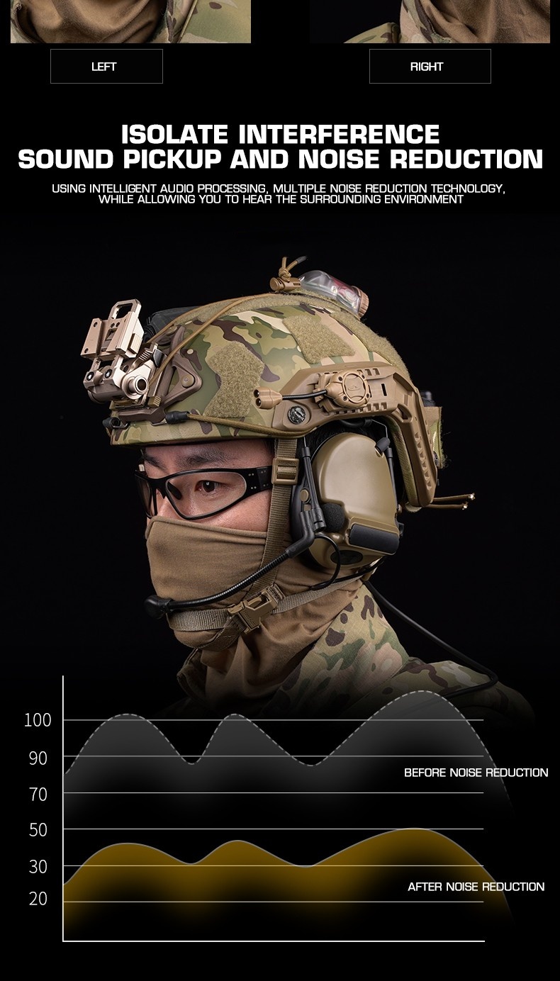 ComtacC5 camouflage tactical headphones, communication noise reduction, sound pickup, range protection, ear cups, head-mounted