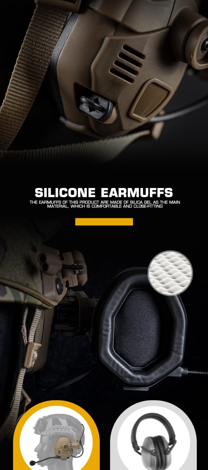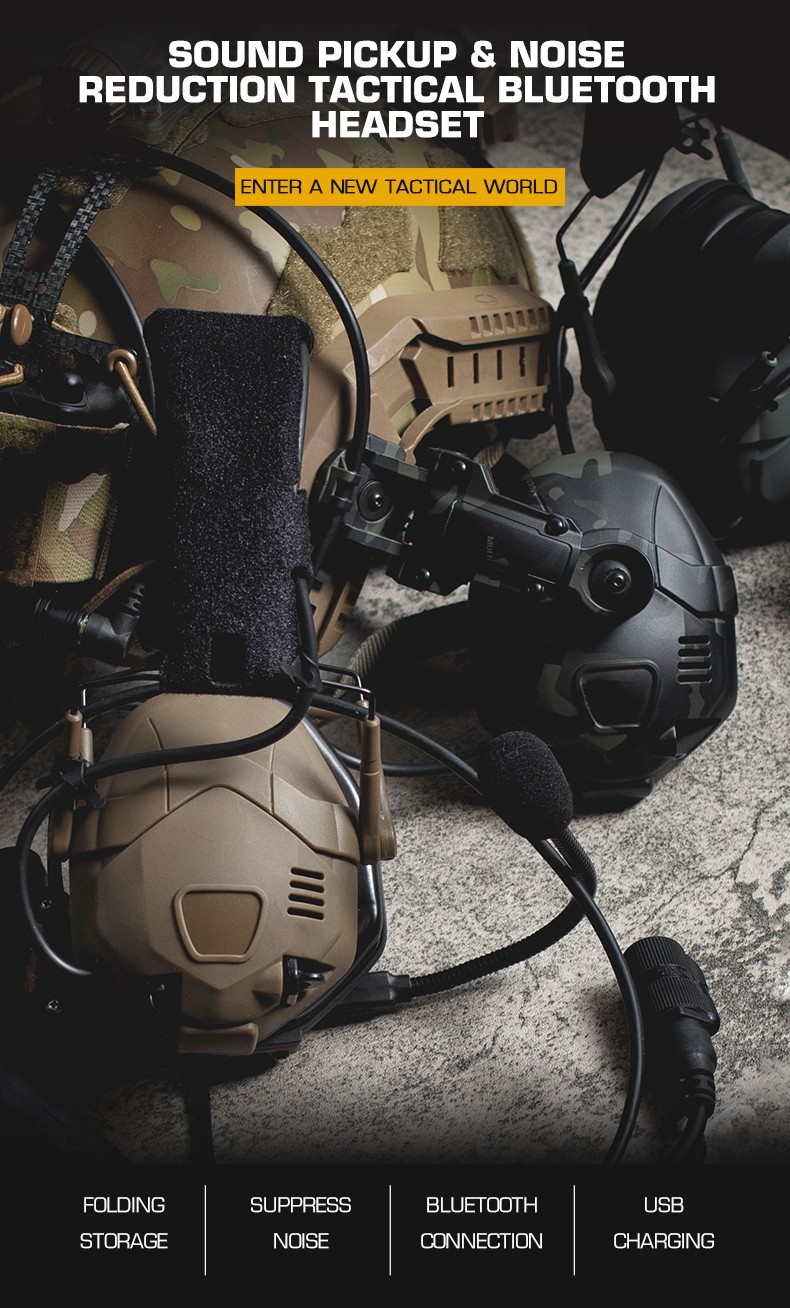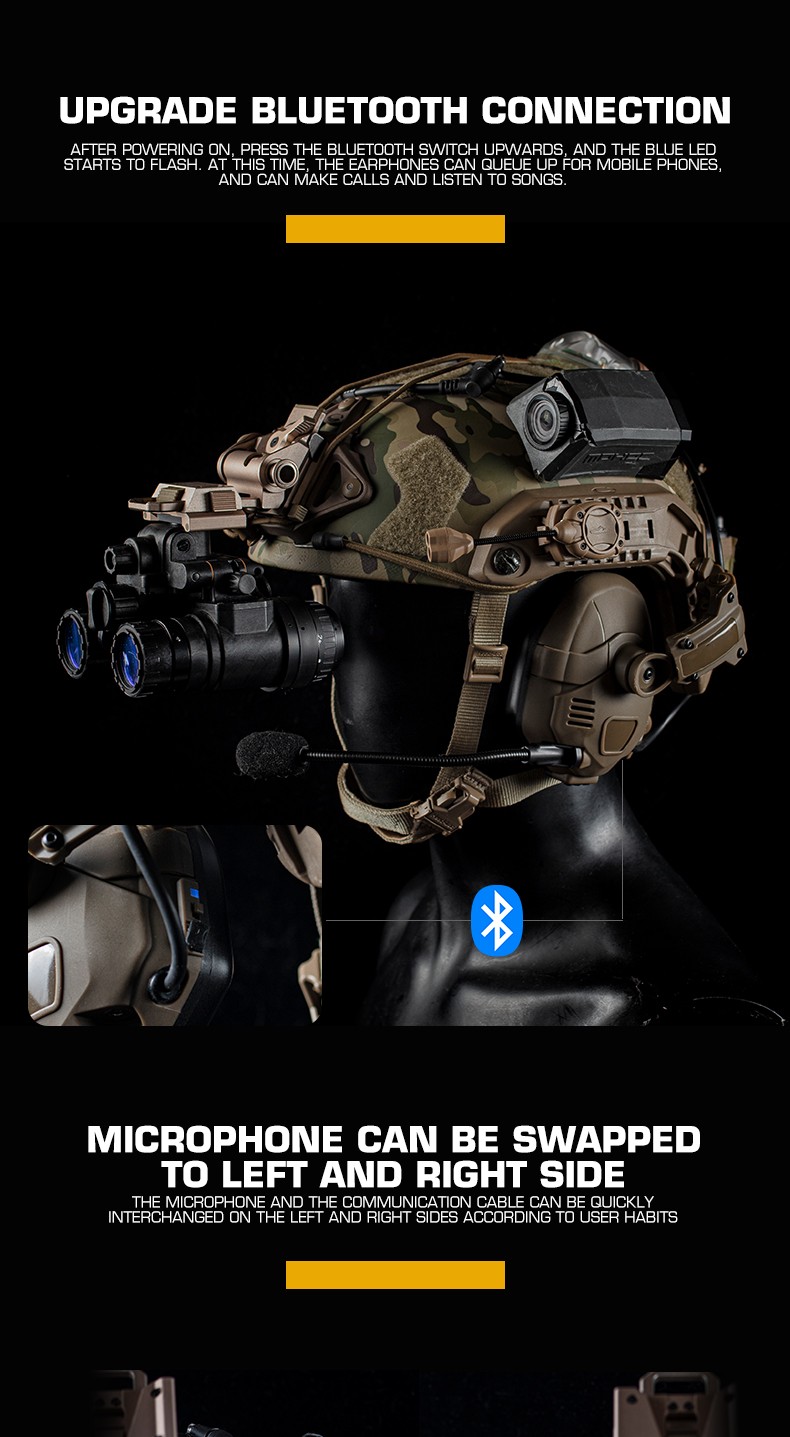 Sound pickup and noise reduction tactical Bluetooth headphones, helmet, quick-release dual-purpose silicone ear cups