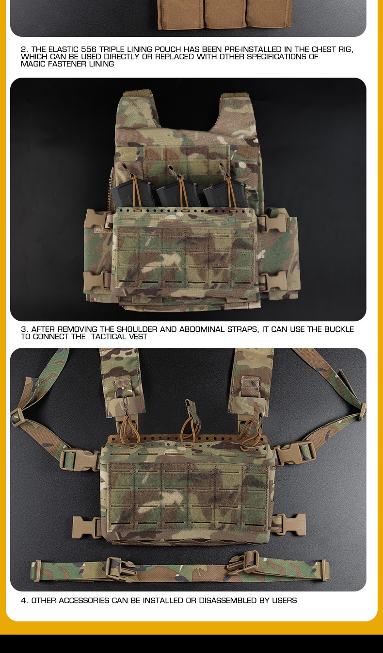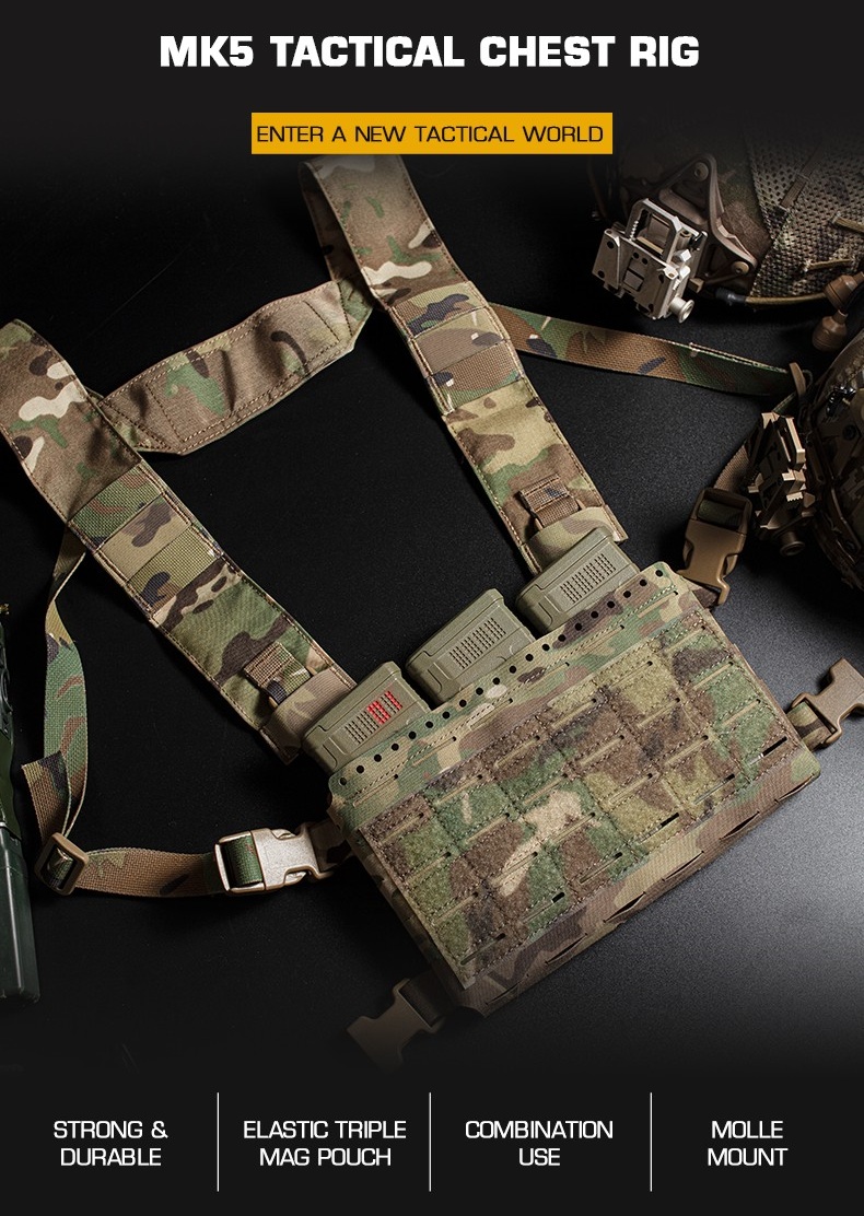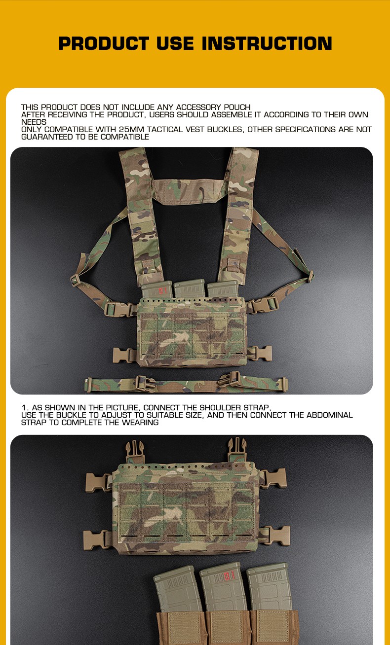 The SSMK5 tactical chest mount front panel is compatible with LV119 SPC JPC2.0 expansion assembly MOLLE